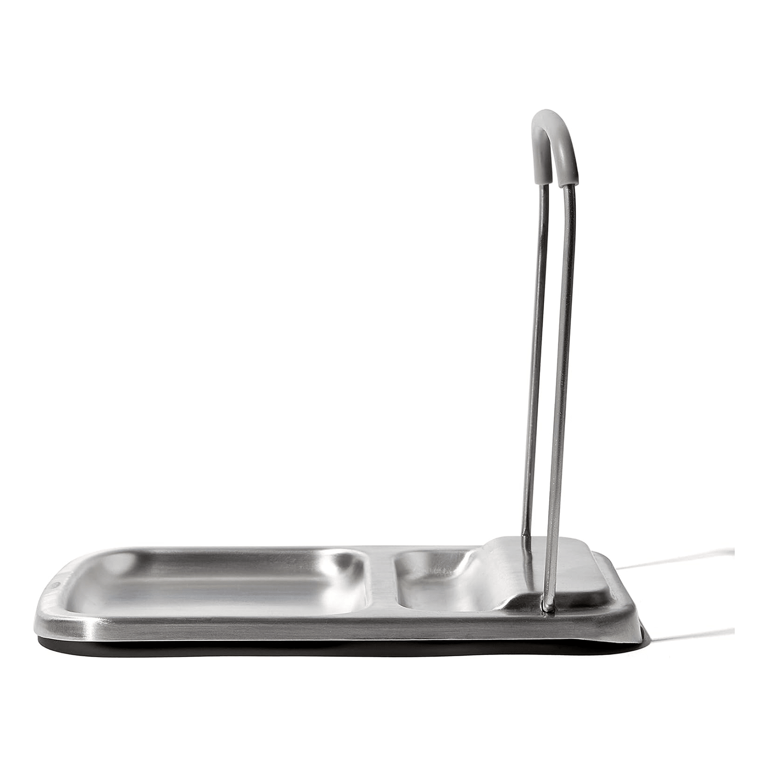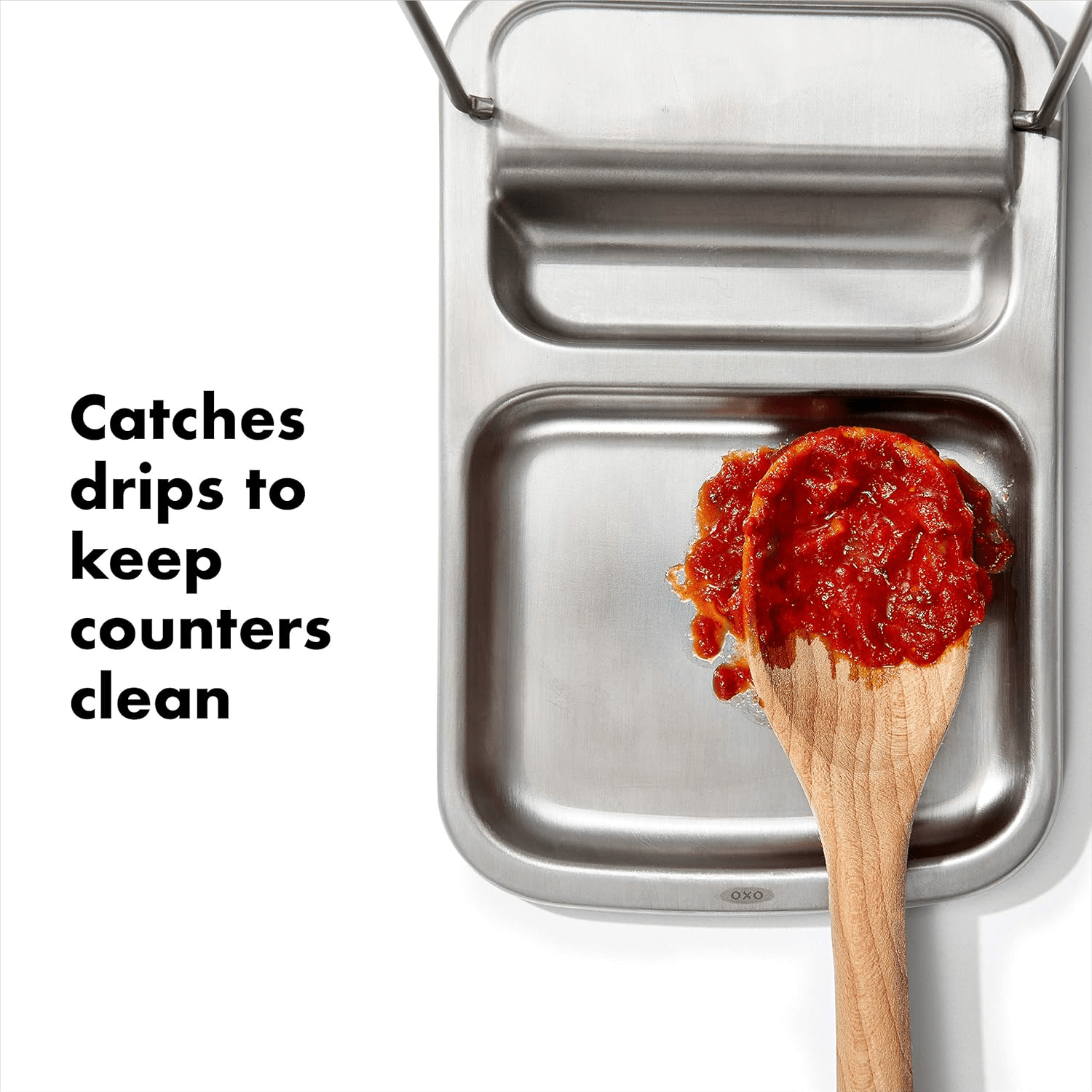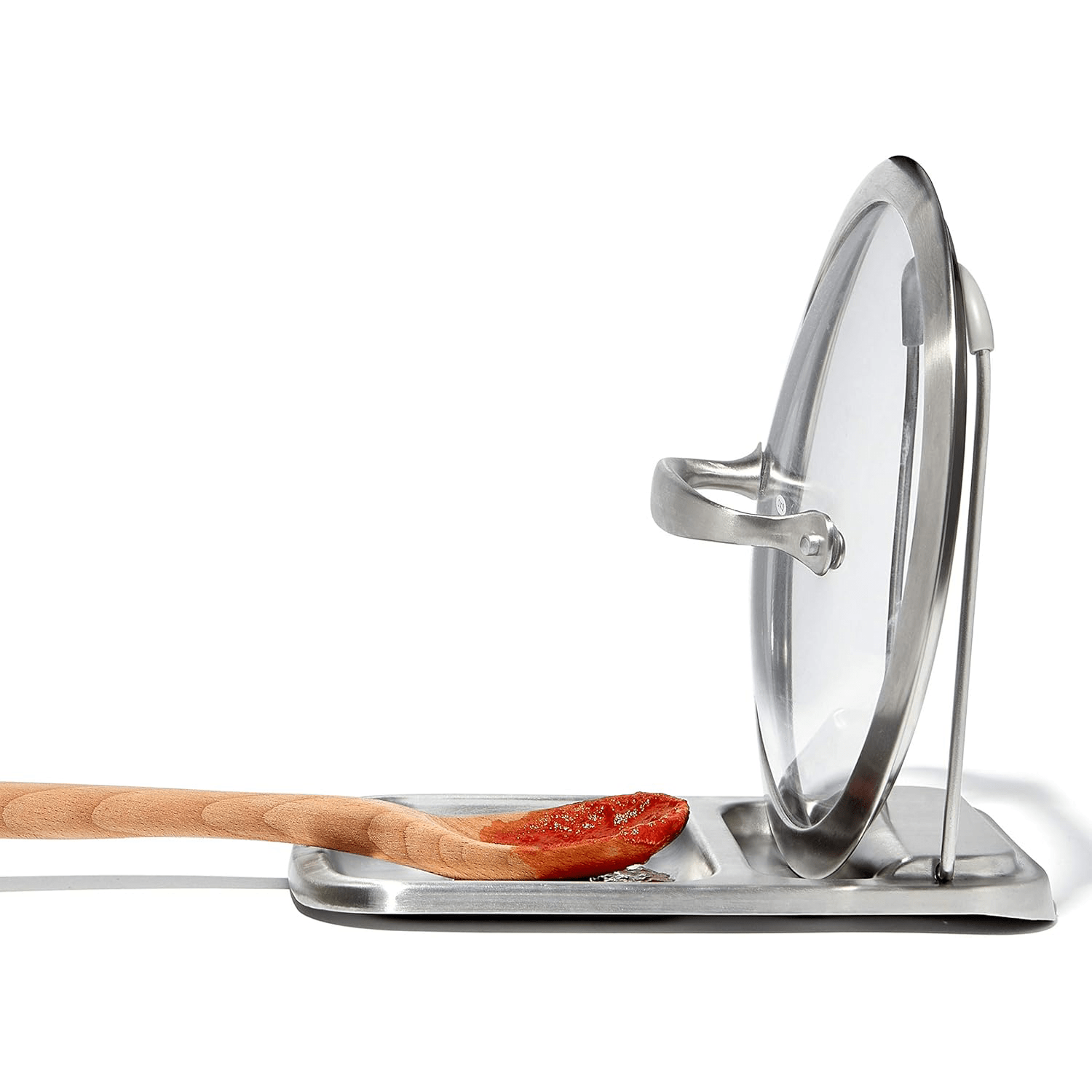 PREVENT SPILLS: The stable, weighted design keeps utensils from tipping or sliding, even when holding heavier spoons or lids.