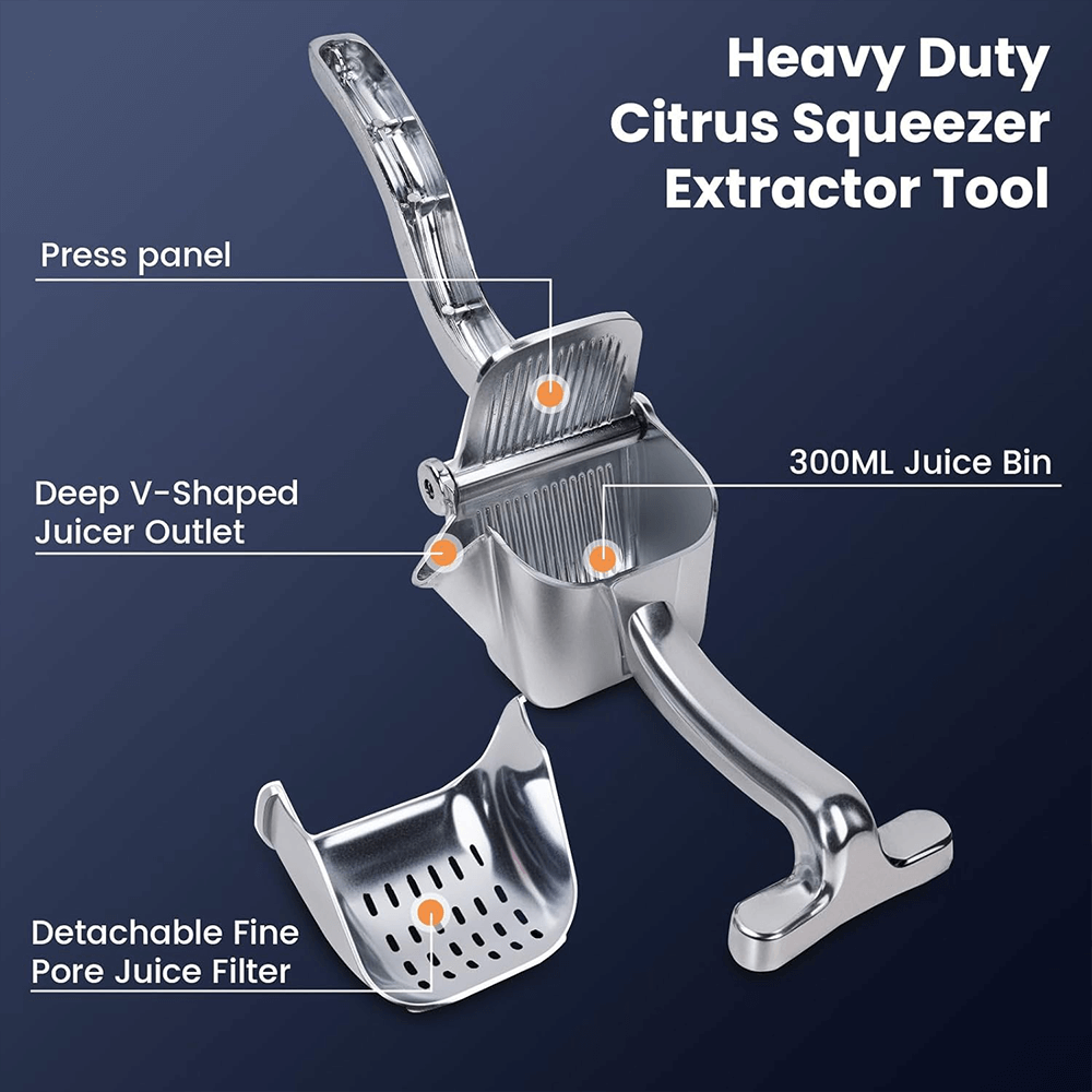 COMFORTABLE GRIP - Featuring an ergonomic and sturdy grip allowing you to comfortably squeeze out every drop of juice with minimal effort.